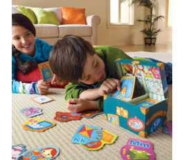 Tons of fun is packed into this suitcase classic! With 5 ways to play, kids will practice letter names and sounds, build memory skills, create stories, and even play fun riddle games! Includes adorable cardboard trunk (which doubles as package), 26 alphabet picture cards, 26 alphabet riddle cards, and guide. Grades K+